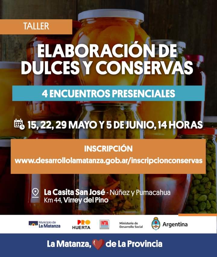 El Programa Huertas Matanceras, en conjunto con el Instituto Nacional de Tecnología Agropecuaria Área Metropolitana de Buenos Aires (INTA AMBA), anunció el inicio del Taller sobre Elaboración de Dulces y Conservas.