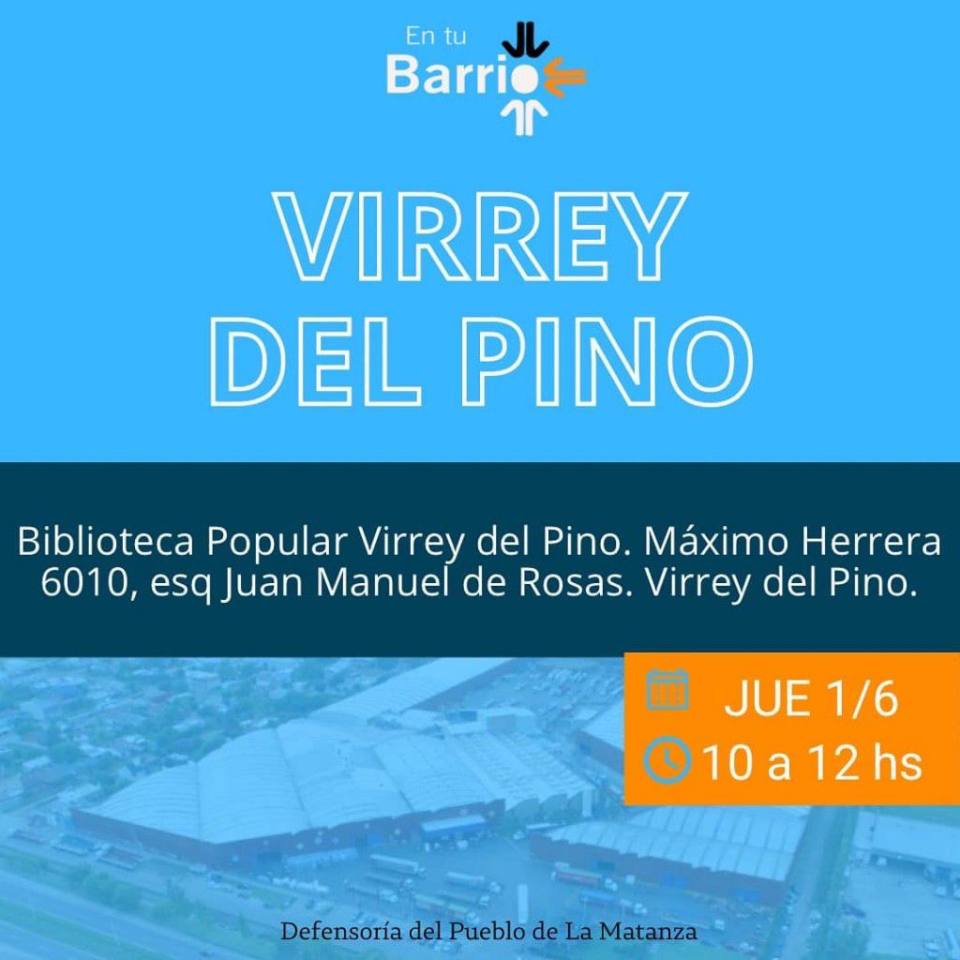 En Virrey del Pino, la Defensoría del Pueblo estará disponible el jueves 1 de junio de 10 a 12hs en la Biblioteca Popular Virrey del Pino, ubicada en Máximo Herrera 6010 esquina Juan Manuel de Rosas.