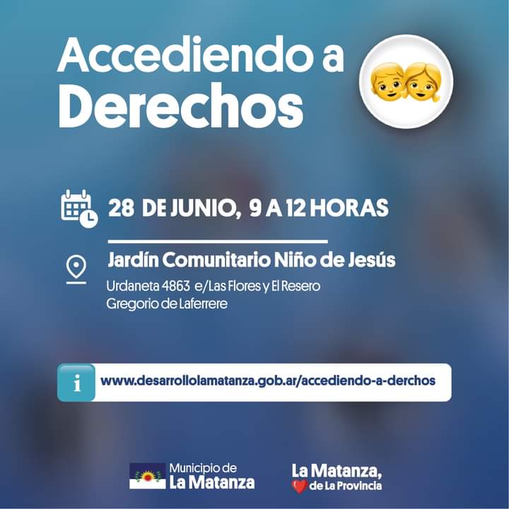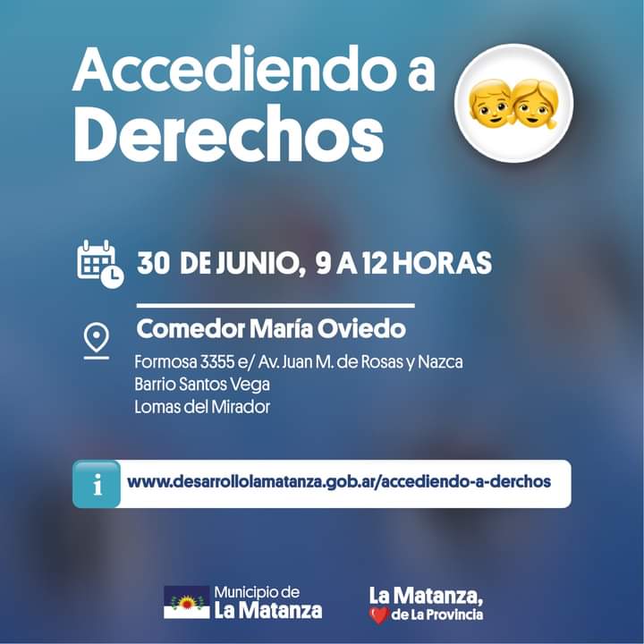 La Municipalidad de La Matanza a través de las Secretarías de Salud Pública y Desarrollo Social, ha anunciado la realización de un nuevo operativo Accediendo a Derechos en las localidades de Gregorio de Laferrere y Lomas del Mirador.