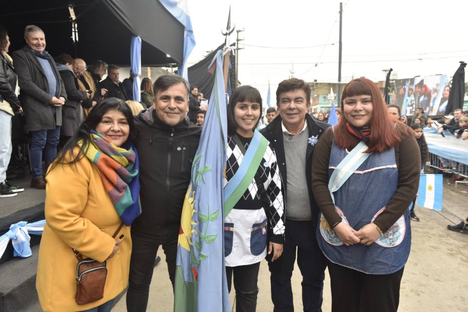 Todos desfilaron orgullosos con las banderas ceremoniales, saludando a las autoridades y vecinos presentes.
