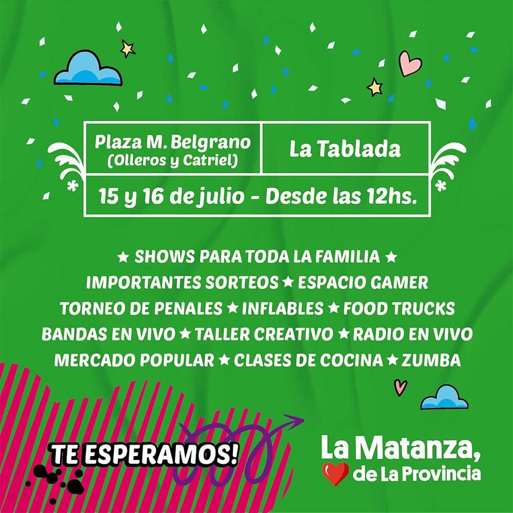 Plaza M. Belgrano, Olleros y Catriel, La Tablada, desde las 12hs.