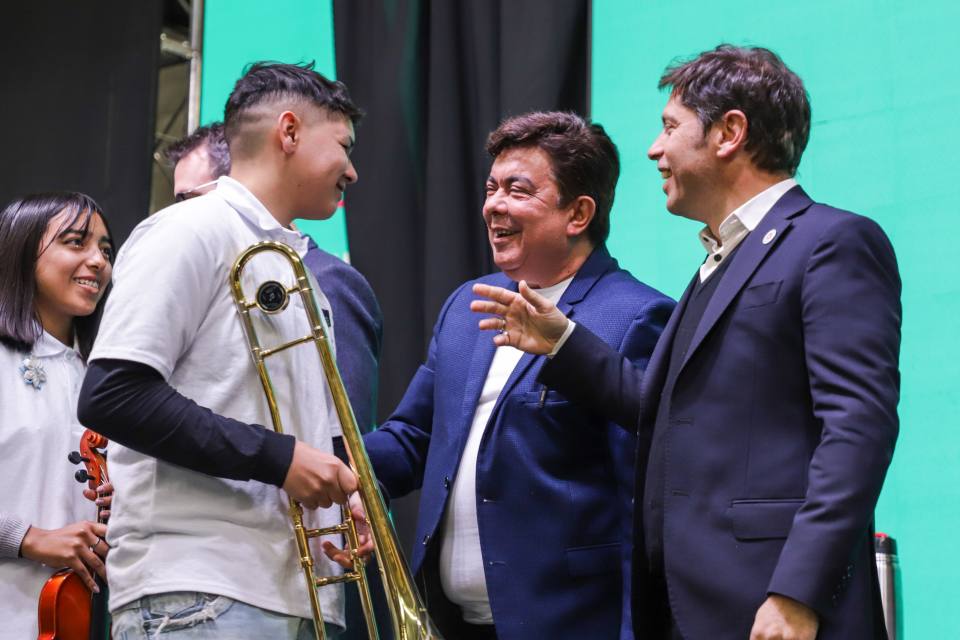 El intendente de La Matanza, Fernando Espinoza, en compañía de la vicegobernadora Verónica Magario, el gobernador Axel Kicillof y la Fundación Banco Provincia, llevaron a cabo la entrega de 1.200 instrumentos e insumos musicales a 11 orquestas, escuelas y 4 coros del distrito.