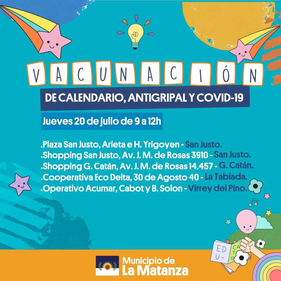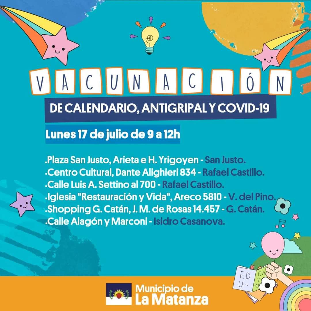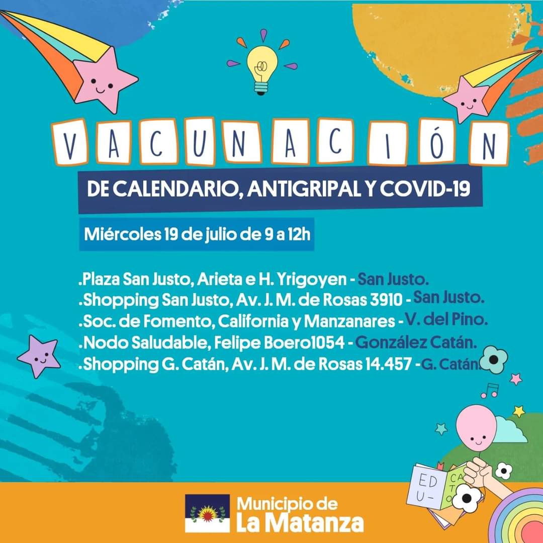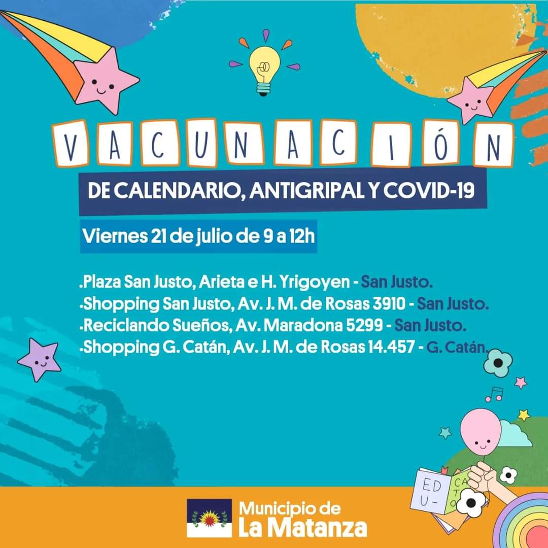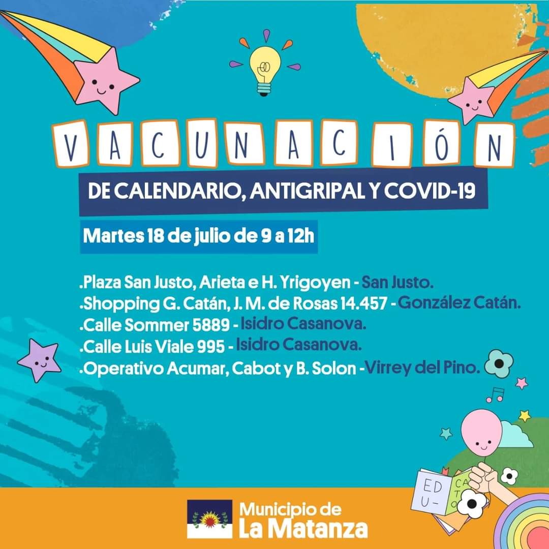En el municipio de La Matanza, se llevarán a cabo las Postas de Vacunación del Calendario Nacional disponible para para todas las edades.