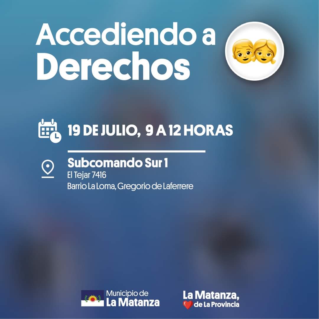 El día 19 de Julio de 9 a 12 hs., en: Subcomando Sur 1, ubicado en El Tejar 7416 en el Barrio La Loma, de dicha localidad.
