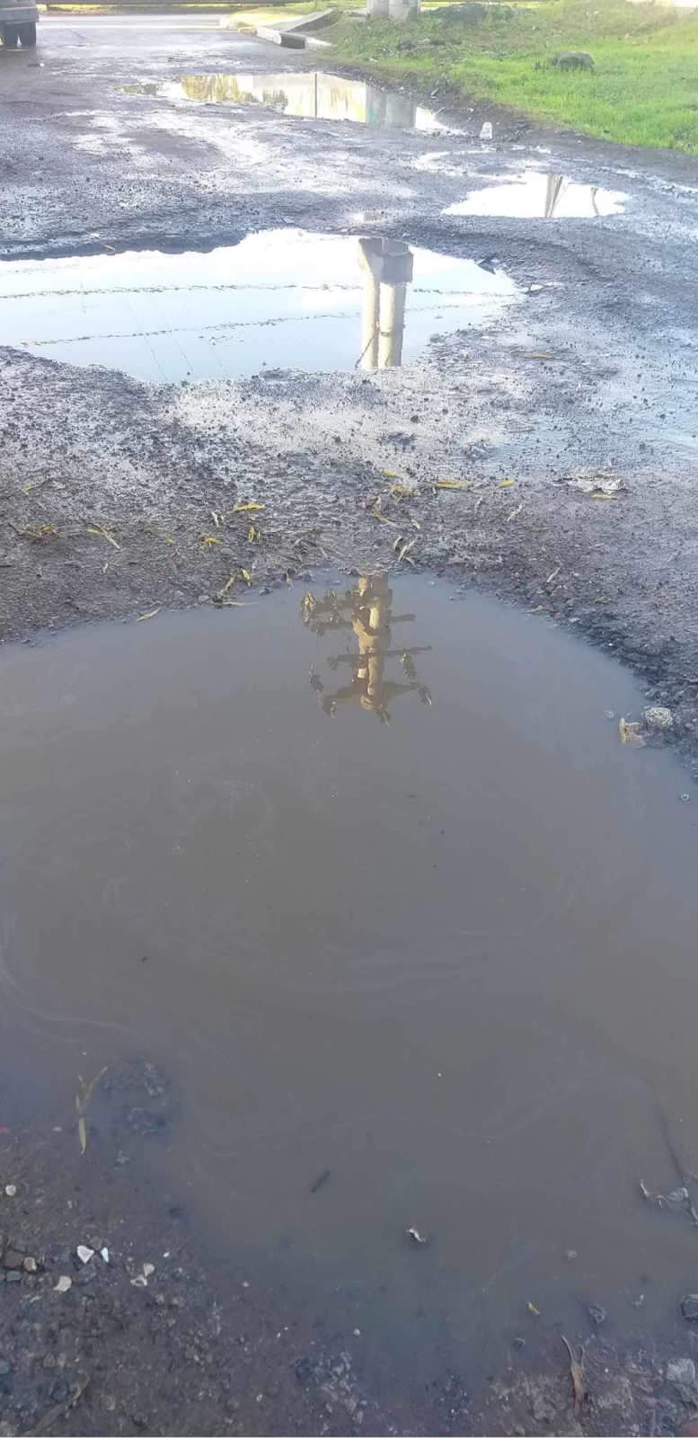 En la localidad de Virrey del Pino en el km 35.200 y sobre la calle Giambruno que tiene entrada al Barrio Areco, la calle se encuentra en pésimas condiciones.