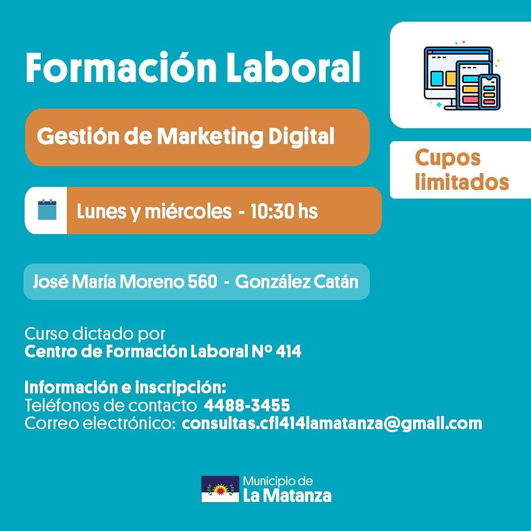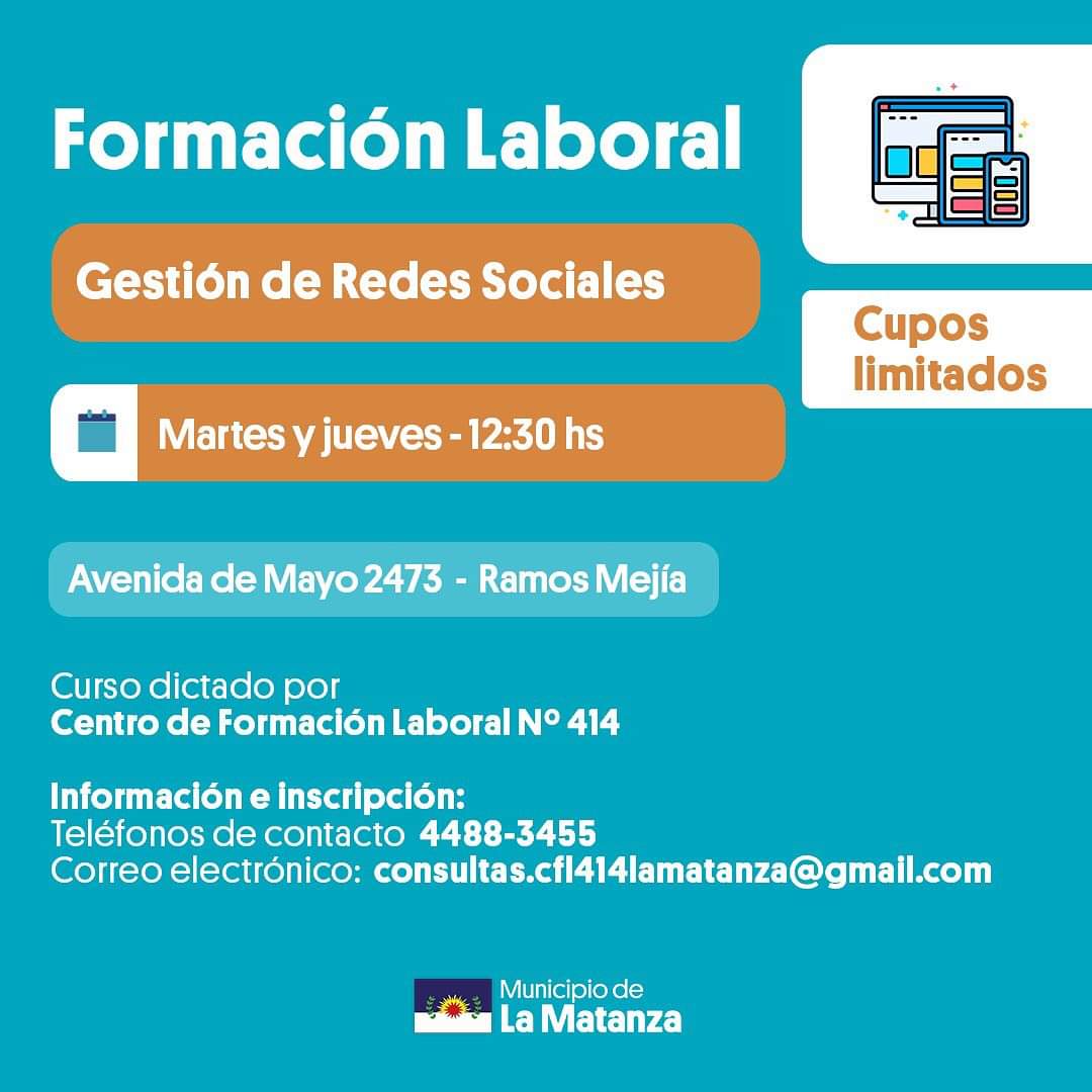 Desde el municipio de La Matanza, a través del Centro de Formación Laboral N°414 en las sedes de González Catán, Ramos Mejía y San Justo, brindan una amplia variedad de talleres formativos:
