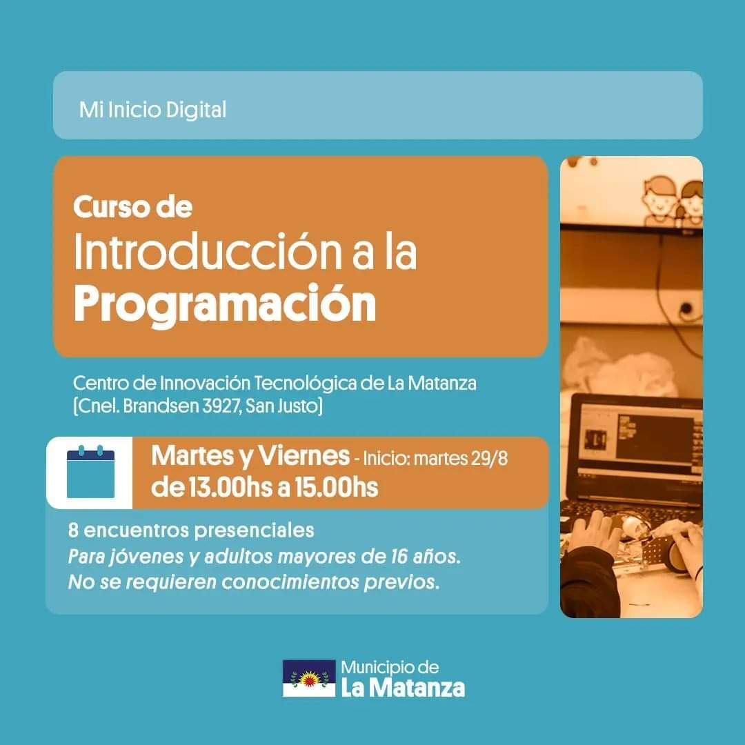 El Centro de Innovación Tecnológica de La Matanza brindará talleres sobre programación para aquellas personas que desean dar sus primeros pasos en este apasionante campo.