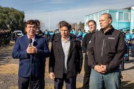 El intendente de La Matanza Fernando Espinoza, junto al Gobernador Axel Kicillof y el Ministro de Seguridad, Sergio Berni