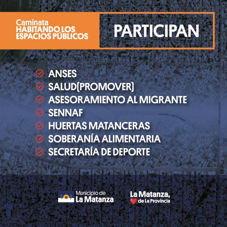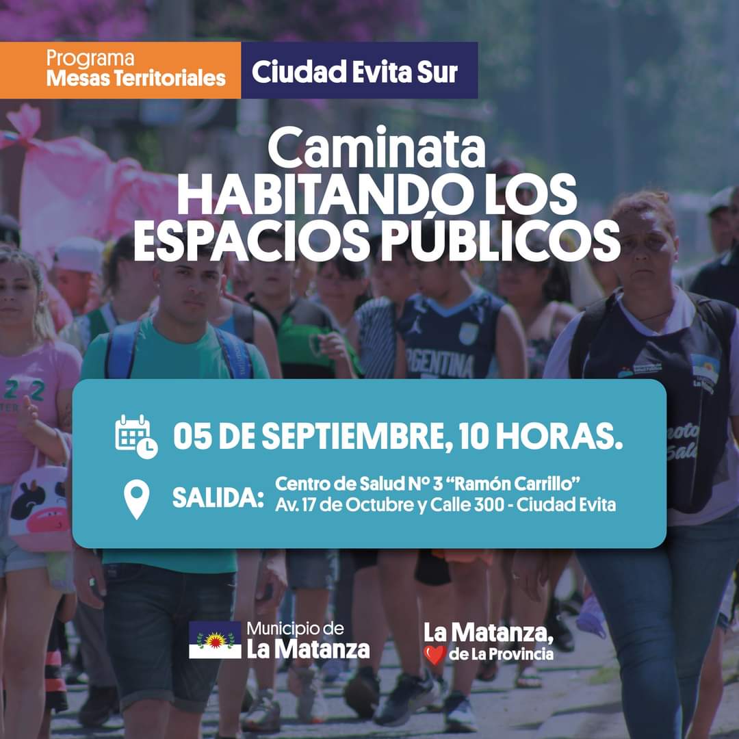 El día 5 de Septiembre desde las 10 hs., tendrá lugar la Caminata «Habitemos el Espacio Público» con inicio en el Centro de Salud N.º 3 “Ramón Carrillo” hasta Av. 17 de octubre y calle 1000 de Ciudad Evita.