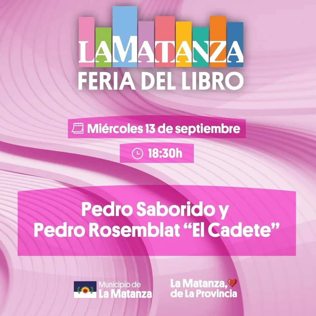 El miércoles 13 de Septiembre, a las 18.30 hs., Se presentarán Pedro Saborido y Pedro Rosemblat «El Cadete».