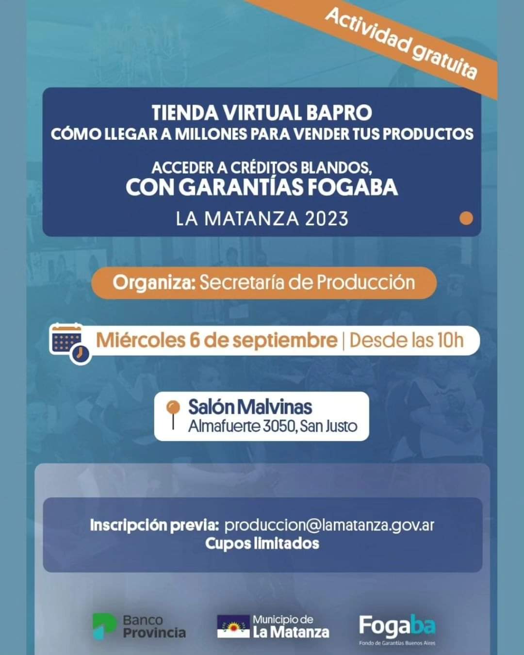 Desde el municipio de La Matanza, a través de la Secretaría de Producción, área que lidera la Lic. Débora Giorgi, expresaron: «Invitamos a empresas y emprendedores, fabricantes de productos finales no alimenticios a participar de la presentación de la tienda virtual del Banco Provincia «PROVINCIA COMPRAS»,
