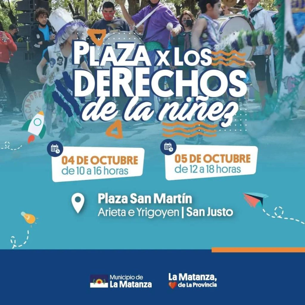 El municipio de La Matanza a través de la Secretaria de Desarrollo Social, informaron: «4 y 5 de Octubre en la Plaza de San Justo→ 11° edición de la Plaza por los Derechos de la Niñez, organizada por el Área de Niñez y Adolescencia de nuestra Secretaría».