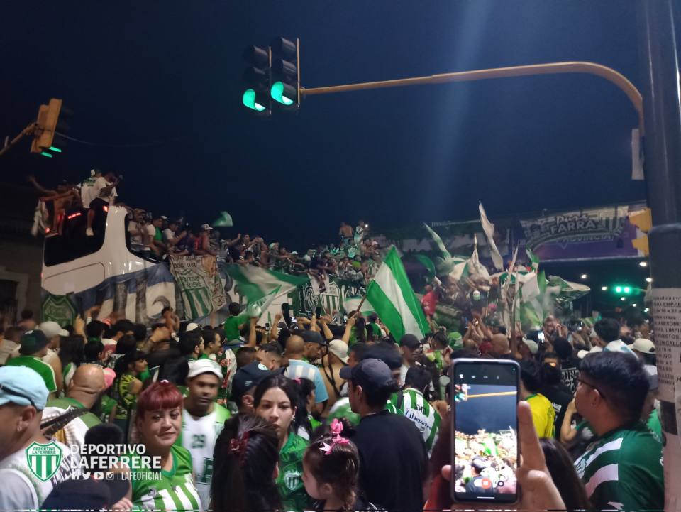El micro avanzó lentamente, abriéndose paso a través de la marea verde y blanca de seguidores que cantaban sin parar, llenando de emoción a los futbolistas y al cuerpo técnico. Incluso el Búfalo Szeszurak se bajó, saltó hacia un colectivo lleno de seguidores de Lafe y se unió al coro de «Lafe se va de la C, Lafe se va de la C…».