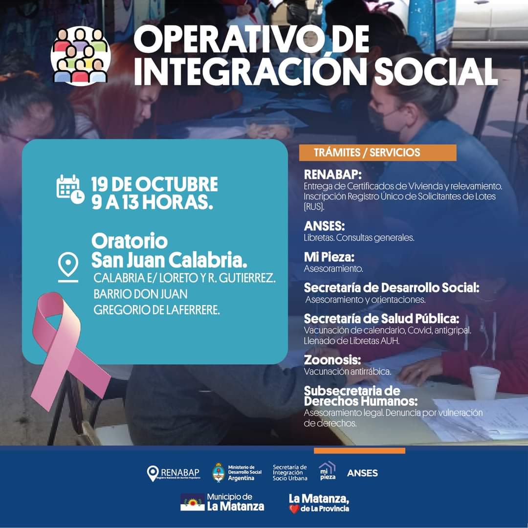 Se llevarán a cabo los Operativos de Integración Social que brinda el Municipio de La Matanza, a través de diferentes áreas.