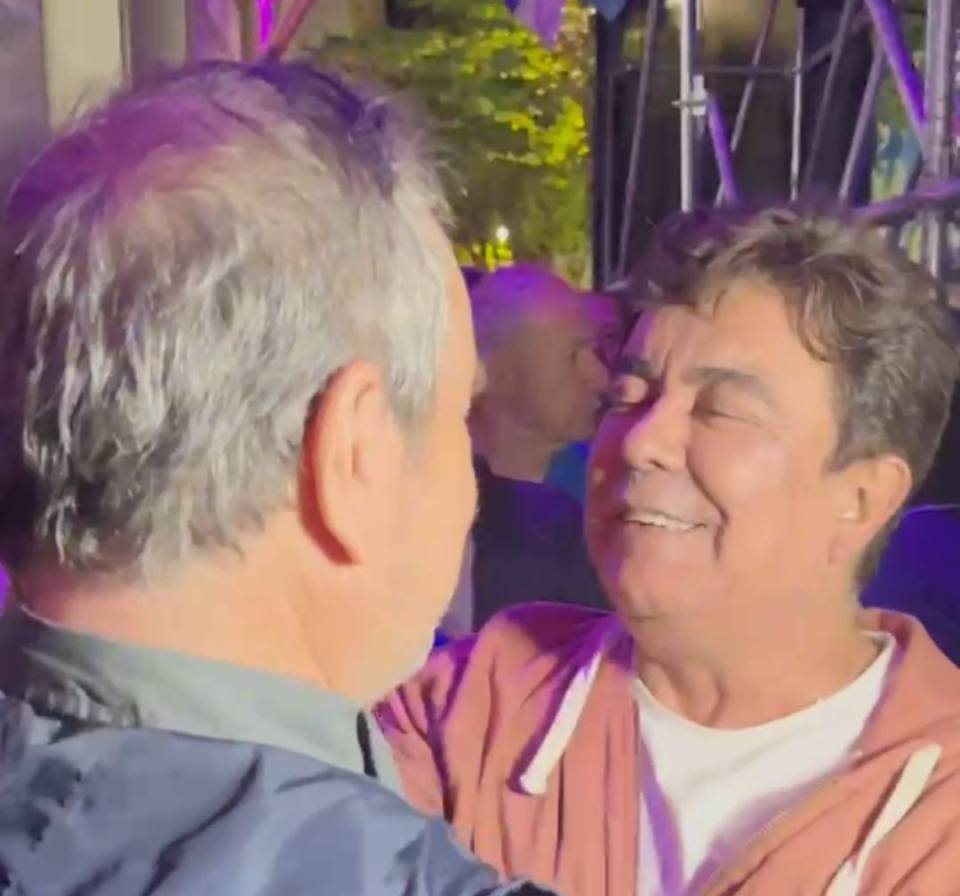 Miguel Saredi junto al compañero Juan Maldonado y al presidente de Almirante Brown, Maxi Levy.