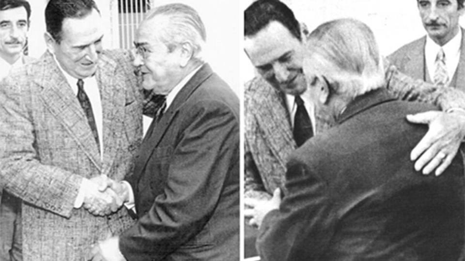 El abrazo entre Perón, líder del peronismo, y Balbín, referente de la Unión Cívica Radical, marcó un hito en la historia argentina al simbolizar la búsqueda de la reconciliación y la unidad en un momento de intensas tensiones políticas.