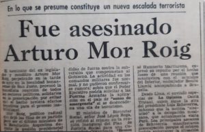 El establecimiento, Rincón de Italia, cerró hace pocos años, pero durante décadas conservó la mesa con la marca del disparo que terminó con la vida de Mor Roig. El atentado fue planificado con precisión, y aunque en los primeros días la investigación tuvo escasos avances, finalmente se conoció la reivindicación del crimen por parte de Montoneros. Justificaron el hecho señalando que Mor Roig había sido uno de los ideólogos del Gran Acuerdo Nacional impulsado por Lanusse, al que acusaban de ser funcional a intereses imperialistas.