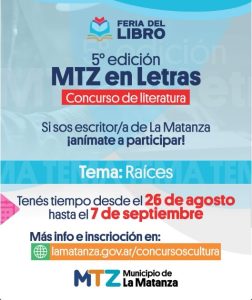 La Secretaría de Cultura y Educación de La Matanza lanzó una nueva convocatoria destinada a quienes deseen expresar su talento a través de la escritura. Se trata del concurso de relatos breves “La Matanza en Letras – Raíces”, una iniciativa que busca promover la creatividad literaria y, al mismo tiempo, fortalecer la identidad cultural del distrito.