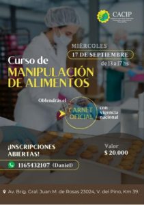 La Cámara de Comerciantes, Industriales, Profesionales y de Servicios de Virrey del Pino (CACIP), bajo la presidencia de Alberto González, anunció la realización de un curso intensivo de Manipulación de Alimentos, destinado a vecinos y trabajadores de la zona que deseen obtener la certificación oficial.