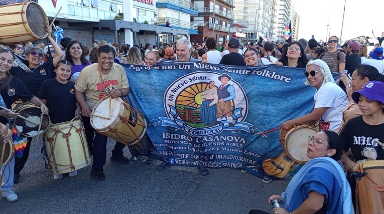 Durante el fin de semana, las actividades incluyeron una vigilia y peña folklórica que reunió a músicos, bailarines y público general en un clima de celebración colectiva. El momento central se vivió el domingo, cuando la columna de bombos partió desde el muelle de pescadores y recorrió la costa de Miramar hasta el Polideportivo local, generando una postal sonora y visual cargada de identidad cultural.